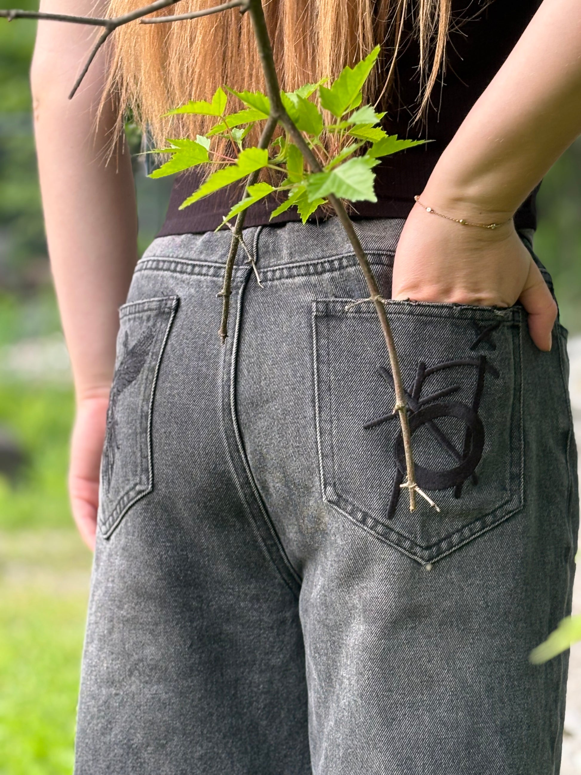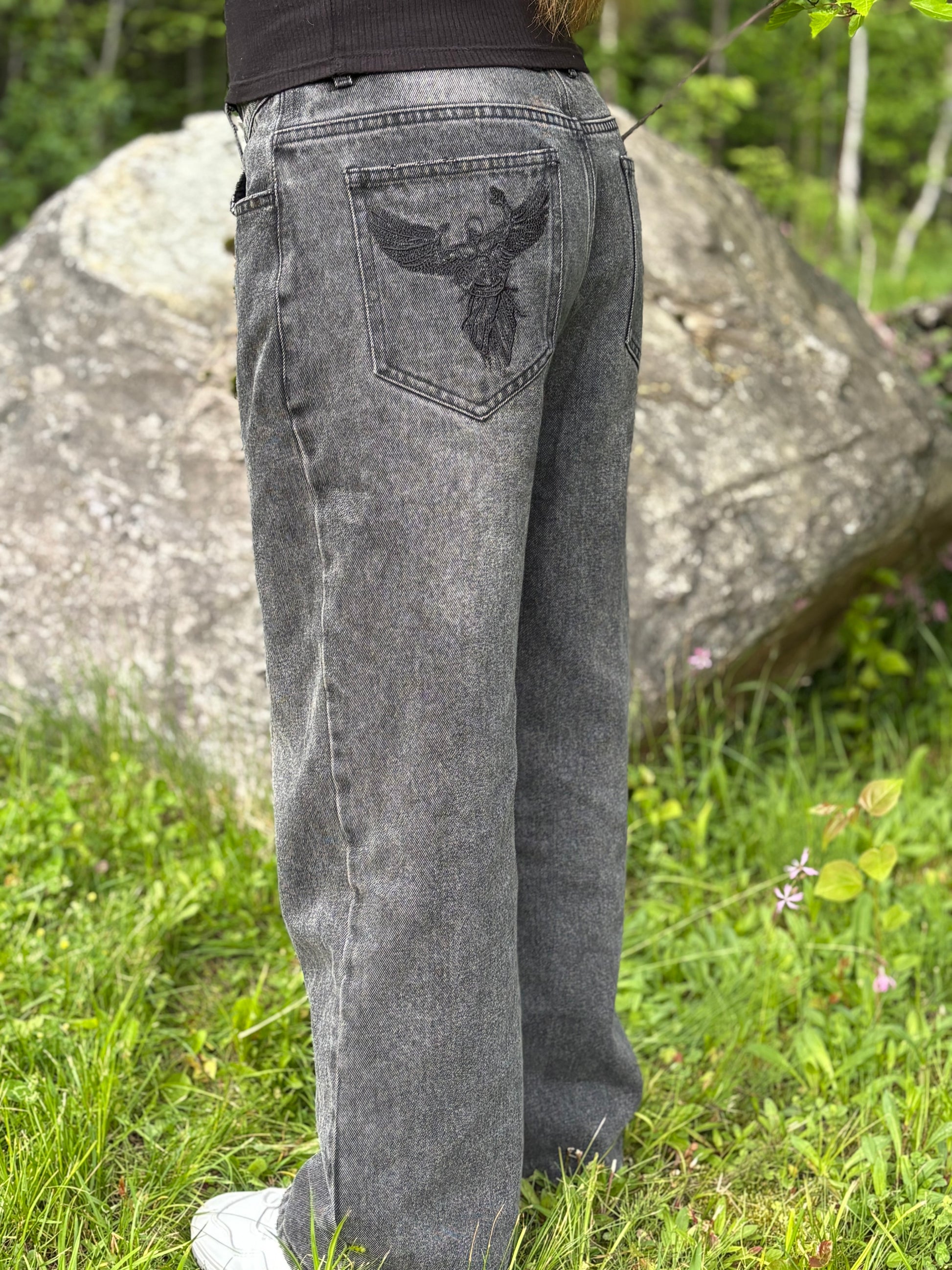 Not just jeans. Armor for the daily grind. Black denim, loose fit, embroidered angel & logo—walk your story, own your path.